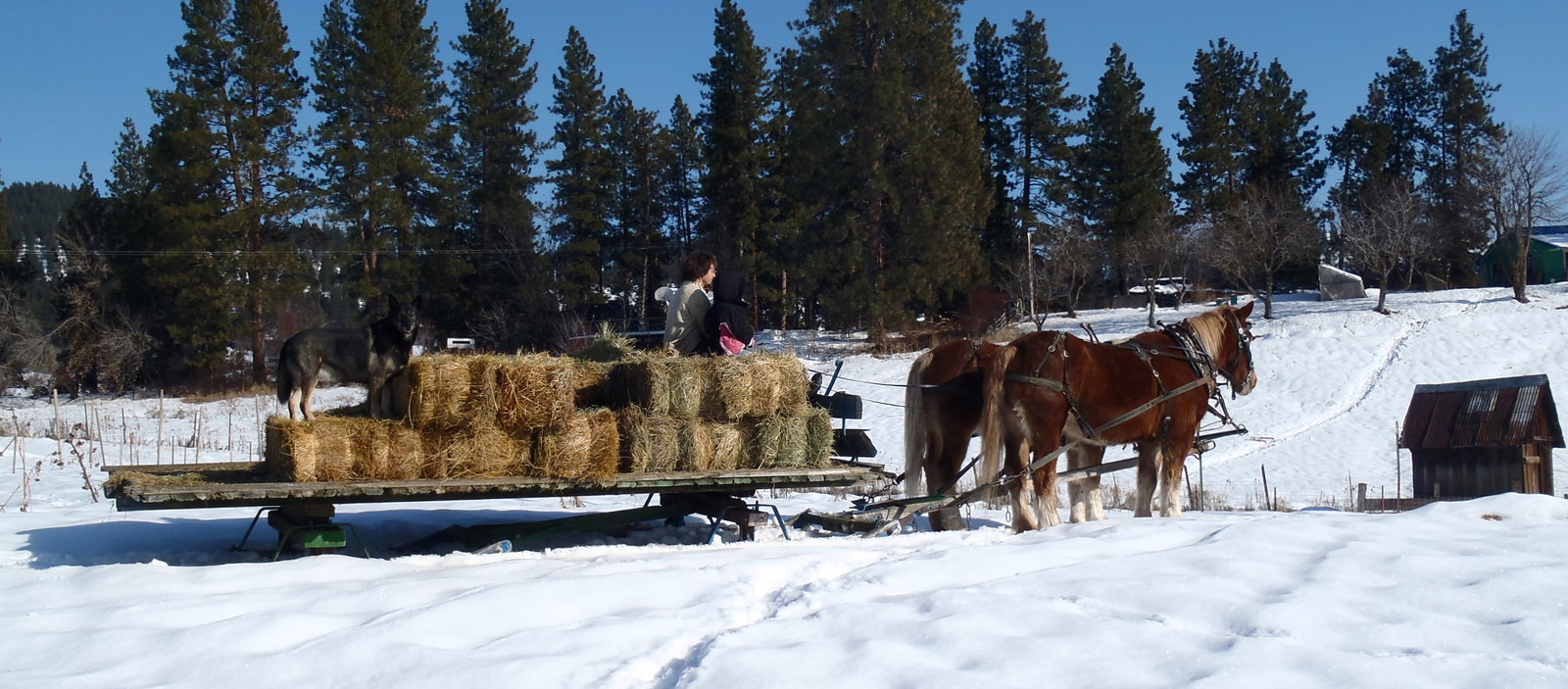 Was: Füttern der Herde im Winter mit dem Schlitten - mit Gale und Nel