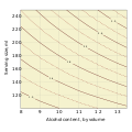 - The axes of this graph could be expanded greatly so as to cover beer (lower %, higher volume) and spirits (higher %, lower volume).